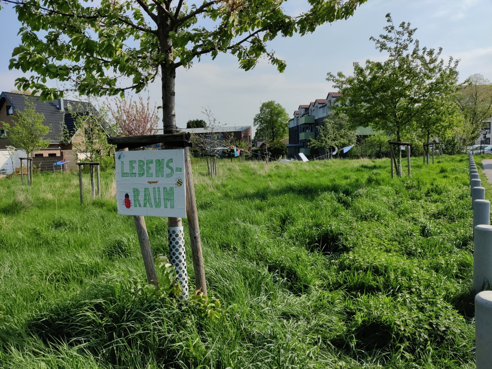 Im Vorfeld haben wir mit Anwohnern und Betroffenen unterhalten und dadurch wurde die Bedeutung der naturierten Ausgleichsfläche nochmals klarer. Der Grünstreifen dient unter anderem als Spielplatz-Ersatz für die in der Umgebung wohnenden Kinder. Täglich gehen hier u.a. viele Senioren des anliegenden Altersheims spazieren. Abends sind Fledermäuse zu beobachten.